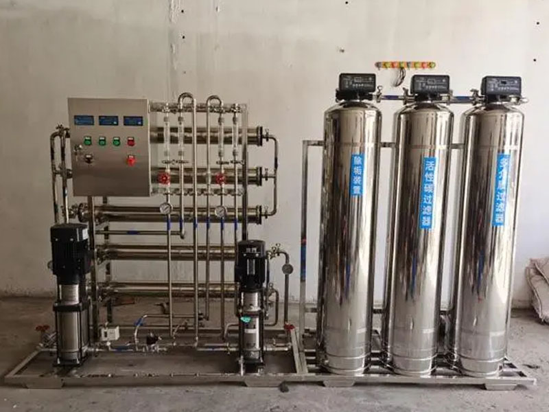 - 经过软化器的水进入反渗透装置,通过高压泵提升压力,使水分子和少量的无机盐、有机物等通过反渗透膜,而大部分的无机盐、有机物、细菌、病毒等被截留在反渗透膜的一侧,从而实现水的深度净化。